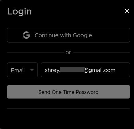2. I typed an email and clicked on “Send One Time Password”